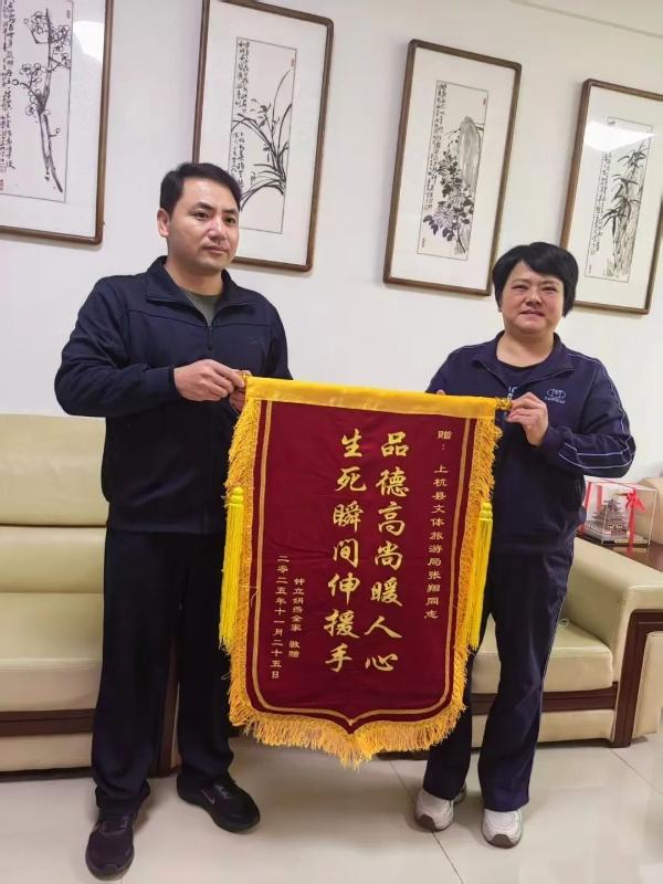 “危难时刻,幸亏张翔挺身而出,以他及时、专业、无私的救助,为后续医院成功抢救赢得了宝贵时间。”钟立娟说,前段时间,自己虽然一直忙于照顾爱人,但时刻想着找到救命恩人,“我们全家每每回想起那个夜晚,都深感后怕。同时也为能遇到张翔这样的好心人而感到无比的庆幸。我爱人脱离生命危险,伤情趋于稳定后,我从交警那边找到了张翔的联系电话,立刻联系了他,就是为了说声谢谢!” 钟立娟还向张翔的单位上杭县文体旅游局送上了感谢信、锦旗。 张翔是退役军人,在部队时曾荣获优秀士兵、三等功、全军优秀士官人才奖、南京军区空军红旗车驾驶员等荣誉。这次救人已是张翔第三次见义勇为。谈及救人经历,张翔说:“我是党员,是退役军人,危难时刻只有一个念头,救人。这是举手之劳,也义不容辞。今后遇到类似事,我还是会照样上前。” |