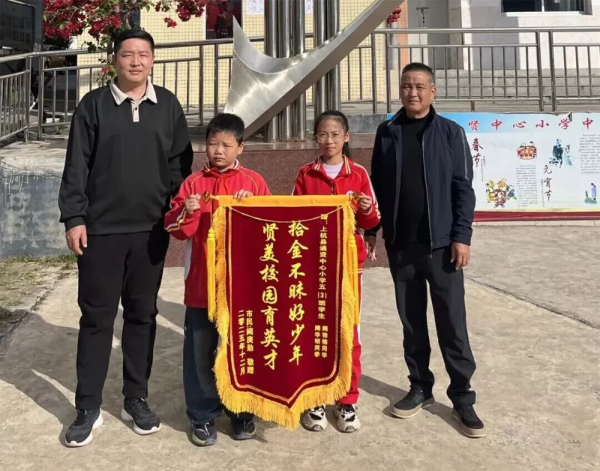 近日,上杭县通贤中心小学两名少先队员拾金不昧的善举,收获高度赞扬,他们以实际行动诠释了新时代少年的责任与担当! 事情发生在11月21日上午,通贤中心小学刚刚结束教学开放日、家长开放日暨初小衔接系列活动。活动落幕之际,五(3)班的阙雅楠、阙华明两位同学在校园内意外发现一枚金戒指。面对贵重物品,两位同学没有丝毫迟疑,第一时间将戒指交到班主任蓝老师手中,经确认是三(3)班一位学生家长遗失的物品。随后由学校迅速对接联系到失主,顺利完成物品归还。 失主家长对两位同学拾金不昧的行为感激不已,为表达谢意,特意调整出行计划,定制了刻有表彰话语的锦旗,专程前往学校,于11月24日早上的升旗仪式上,将锦旗送到阙雅楠、阙华明手中,现场掌声雷动,师生们用热烈的掌声向两位同学致敬,这暖心的一幕也成为家校协同、共育新风的真实写照。