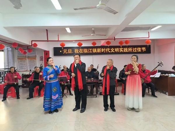 载歌载舞庆元旦,同心同乐迎新年。连日来,我县多地开展庆祝活动,提升群众的归属感和幸福感,让文明之花在节日中绚丽绽放。 临江镇 临江镇镇西社区聚焦文明社区建设,开展“移风易俗树新风,文明社区共创建”主题活动,通过主题宣讲、发放《移风易俗倡议书》、志愿服务实践等多样化形式,引导居民自觉抵制不良风气,树立文明理念。