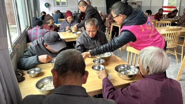 近日,陈屋村幸福院长者食堂内饭菜飘香。临近饭点,老人们陆续到来,围坐在一起,边享用可口的家常菜,边闲话家常,脸上洋溢着笑容。该食堂自2024年创办以来,已累计服务超过2万人次。 溪口镇陈屋村用餐老人 陈信銮:这边有配备保洁员,长者食堂每天都收拾得很干净,自从村里的长者食堂运营以来,村里大部分65周岁以上的老人都会到这边来吃饭,每顿饭荤素搭配,味道也好,好多老人家都胖起来了。
