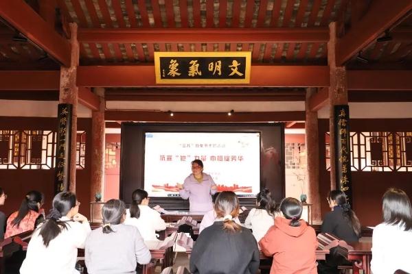 中心负责人刘聪娣老师通过小故事、互动问答、案例讨论、分享感悟等形式,为城西幼儿园、金山湖幼儿园全体教职工放松身心,解开工作与生活中的心理困惑,引导大家在忙碌的幼教工作中学会关爱自己、滋养心灵,以更积极健康的心态面对工作与生活,筑牢心理健康防线。 老师们表示聆听讲座后,明白了只有自己保持阳光心态,才能更好地温暖孩子。学会自我关怀不仅有助于保持身心健康,还能帮助自己在工作生活中重新获得平衡,在守护孩子成长的同时,实现自我价值与幸福感的双重提升。 进机关:杭宣“她”力量 巾帼绽芳华