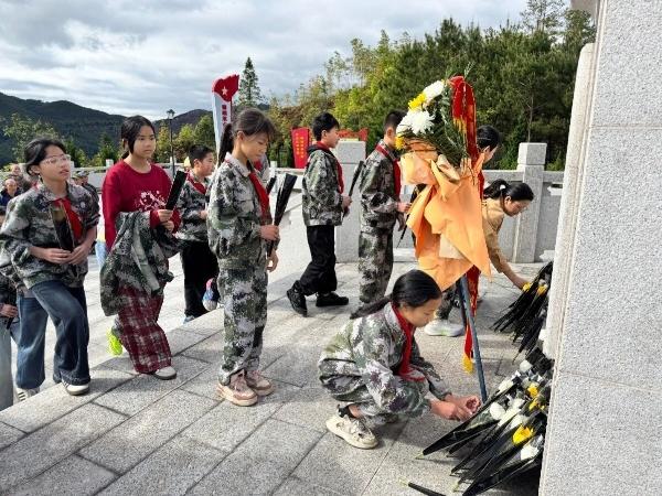 鲜花寄哀思,丰碑育后人。全体人员怀着无比崇敬的心情,在革命烈士纪念碑前,齐唱中华人民共和国国歌,并由乡党委书记张定卿宣读祭文。随后全体人员驻足凝视、行三鞠躬礼并默哀、敬献鲜花,少先队员们为烈士墓碑描红,缅怀烈士伟绩,寄托哀思。