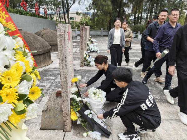 在庄严肃穆的烈士陵园,全体人员着深色服装,整齐列队,向革命烈士肃立默哀、行三鞠躬礼。大家仔细清扫墓区、清除杂草、擦拭墓碑,并敬献鲜花、缓步绕行瞻仰,接受深刻的红色精神洗礼。