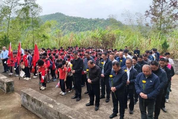 梨花风起清明至,缅怀先烈寄哀思。为弘扬清明传统文化,倡导文明祭祀新风,培育爱国主义精神,4月2日上午,湖洋镇组织镇机关支部党员、团员、湖洋中心小学师生代表、新时代文明实践志愿者、古楼村两委干部等前往古楼村乡村文化会客厅郭义为烈士纪念墓开展“追寻·2026·清明祭英烈”祭扫活动。 在郭义为烈士纪念墓前,全体人员怀着沉重的心情,整齐列队肃立,党员、学生代表向革命先烈敬献花篮,全体人员默哀致敬,深切缅怀郭义为烈士的光辉业绩,追思先烈的崇高革命精神。