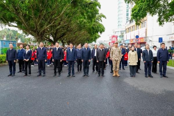 翠柏挺立,致敬英魂。革命烈士纪念碑巍然矗立、气势雄浑。罗剑、严承龙、王尧华等与全体祭扫人员神情庄重、心怀敬仰,整齐列队于纪念碑前,全场肃立静默,共同缅怀革命先烈的不朽功勋,寄托深切哀思。