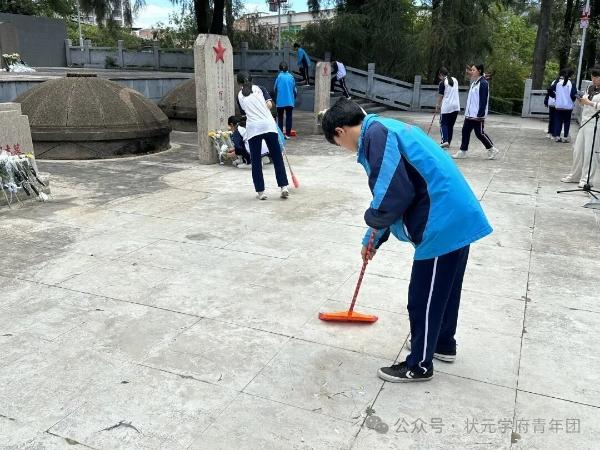 陵园中寄情,敬不朽英魂 师生代表赴烈士陵园开展实地祭扫。同学们清扫墓园,以朴素行动致敬先烈;整齐列队默哀鞠躬,面向团旗庄严宣誓,誓言铿锵,彰显新时代青年传承使命的坚定决心。师生依次敬献白菊,在苍松翠柏间完成一场跨越时空的精神对话,让敬仰与追思长存心间。